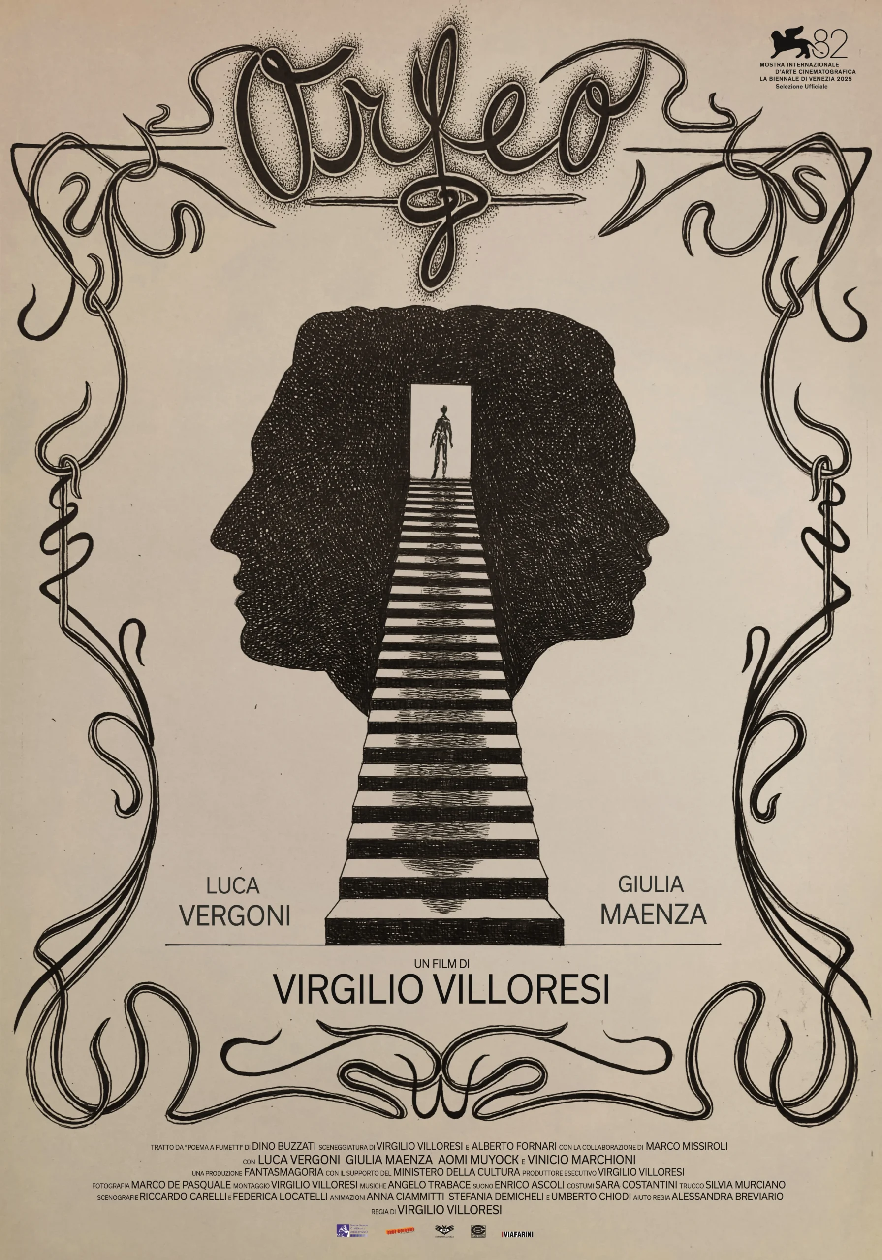 A piano, a woman/a vision, and a Lewis Carroll-esque door leading to a world where logic dissolves: Orfeo takes the myth and, like a Rubik's cube, reassembles it into a deeply artisanal cinematic artifact. Inspired by Dino Buzzati's Poema a fumetti, the film imagines an underworld that crosses Del Toro with Guy Maddin and Diabolik's paper and screen Italian pop: an inferno populated by creatures, dancers, skeletons, and other wonders of design. The film passionately devotes itself to creating wonder thanks to Virgilio Villoresi and his combination of action, stop-motion animation, theatrical sets and optical tricks with an almost alchemical meticulousness, creating a space where dreams, memory, magic, and fantasy intertwine infernally. JZ